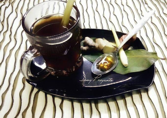 - Bakar terlebih dahulu, jahe dan lengkuas,, setelah itu masak air dengan api kecil, masukan semua bahan terkecuali gula...