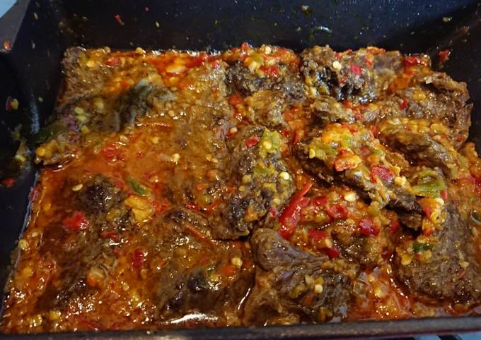 - Giling kasar bumbu balado, ambil minyak bekas menggoreng daging sekitar 5 sdm, lalu gunakan untuk menumis bumbu balado. setelah bumbu balado matang, masukkan daging yang sudah digoreng, aduk2 hingga merata, matikan api dan sajikan dengan nasi panas.