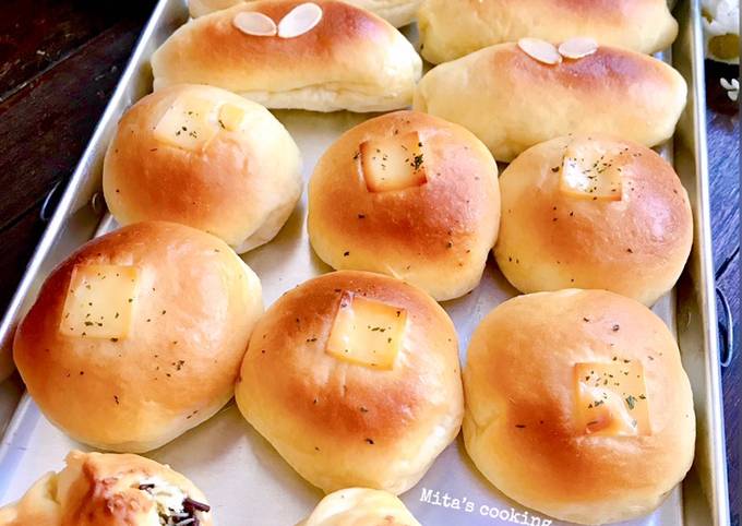 ). - Bulat-bulatkan adonan, Istirahatkan lagi sekitar 15 menit, lalu bentuk dan isi sesuai selera. Diamkan roti yg telah dibentuk sekitar 60 menit hingga mengembang 2x lipat..