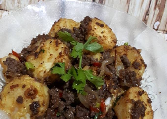 Resep Tofu goreng dengan daging cincang Anti Gagal