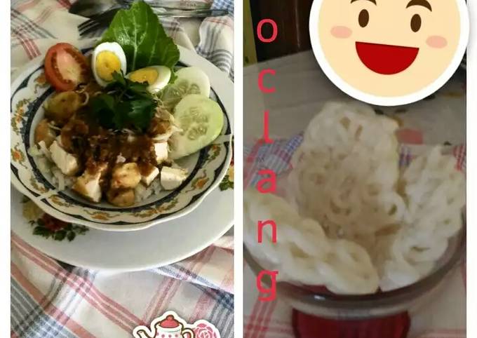 - Siapkan piring tata slada., ketupat yg telah dipotong2, taoge, tahu potong dadu, siram dgn sambal kacang beri sedikit air jeruk nipis. Bawang goreng, telur ayam..