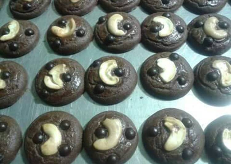 - Kocok lepas sebentar saja putih telur dan campurkan dgn kacang mete.letakkan diatas kue bersama dgn chocco chips.baked..