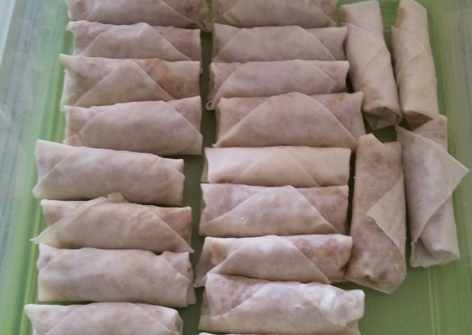 - siapkan kulit lumpia..letakkan sesendok isian..lalu bentuk spt amplop.